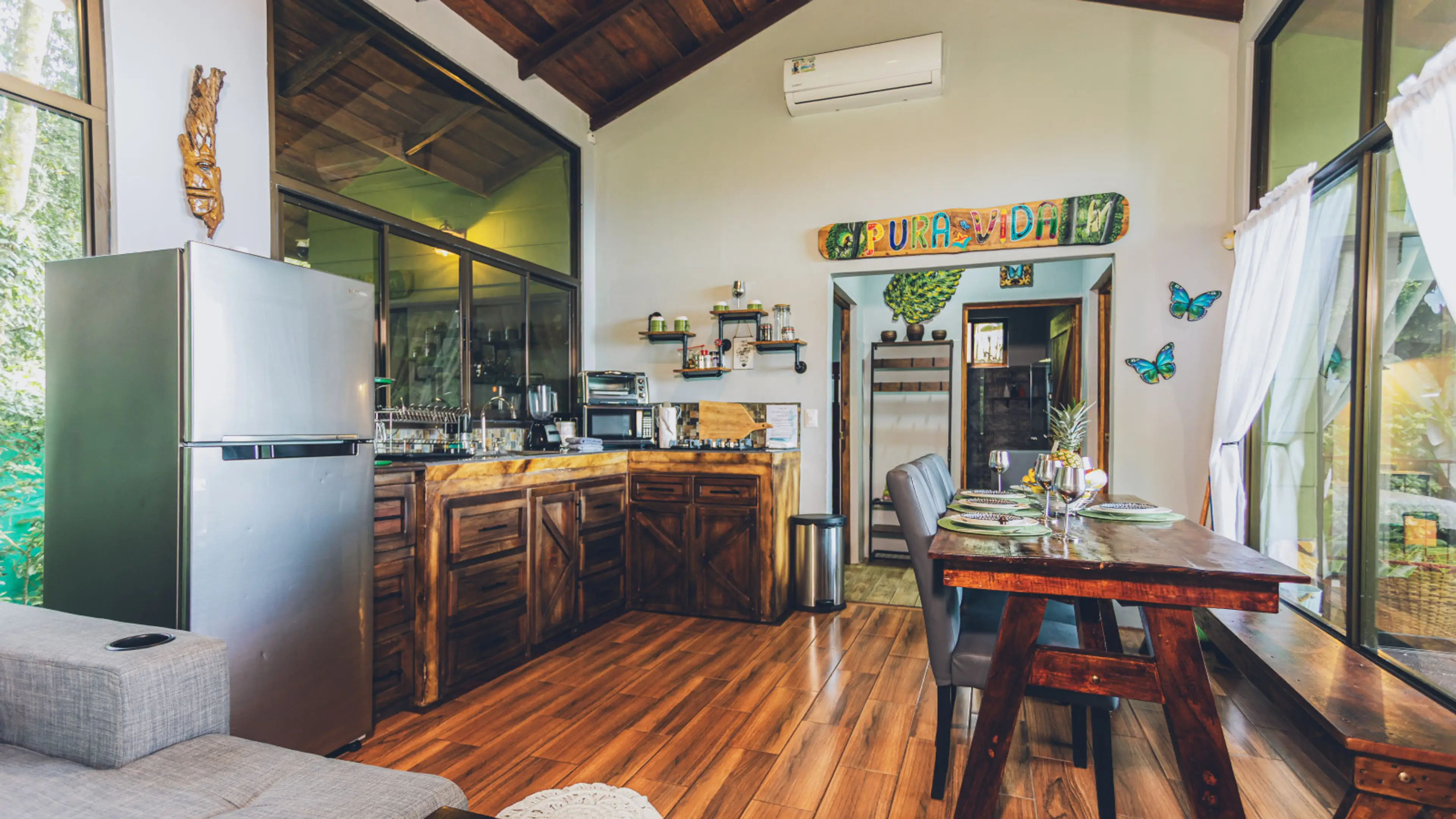 The property and house are beautiful. You truly feel like you are right in the jungle, although that also means that you might be woken by howler monkeys at 6am a couple of days. It was worth it though. Having our own fire pit and the hot tub right next to the house was a big bonus. The road up to the house is VERY rough, and takes about 15 minutes from the main road turn off. We kind of knew that going in, because the listing and property owner do warn you. We had smaller 4x4 cars and we were definitely pushing them to the limits, but it was part of the adventure for us. If you are someone who like to run to town and back several times a day, though, this might not be the house for you. The owner was extremely responsive, and we all had a great time.