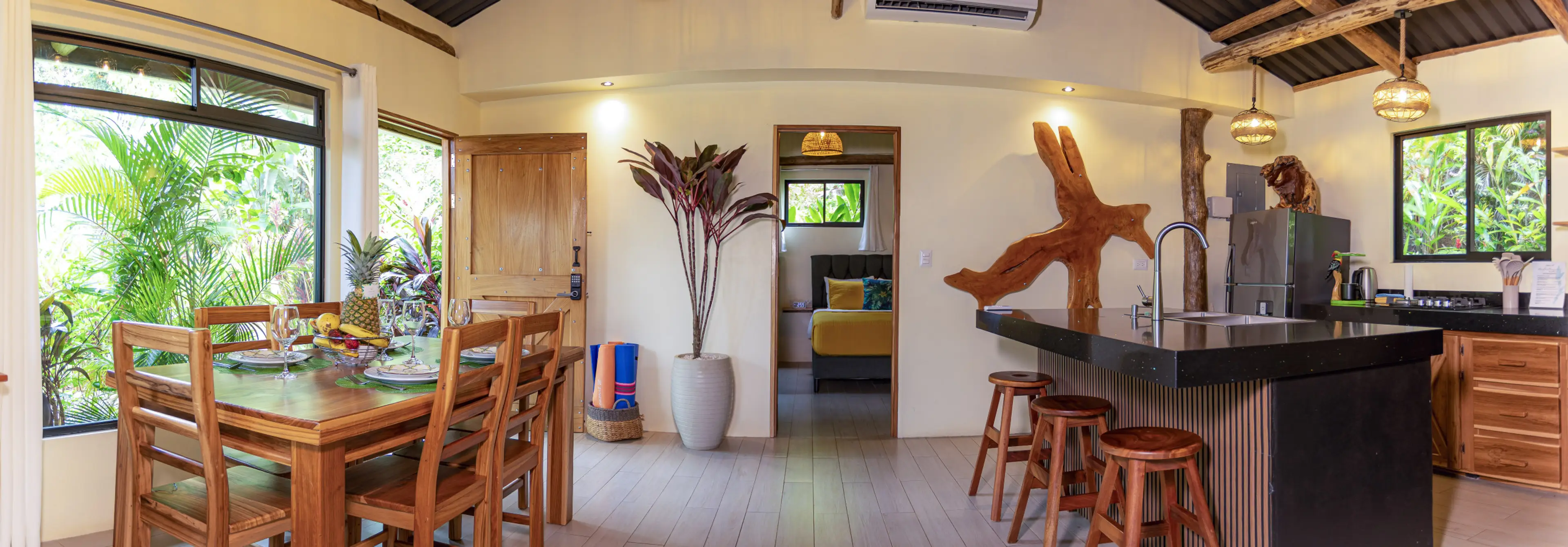 Welcome to El Toucan Cabin, where rustic charm meets modern comfort! Nestled amidst lush rainforest, this picturesque retreat invites you to immerse yourself in tranquility. High ceilings adorned with exposed wood beams create a cozy ambiance, while large windows frame breathtaking cityscape views, ...